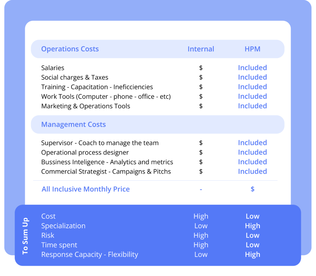 Si no tienes los recursos, el conocimiento o el tiempo para todo tu proceso de ventas y hacerlo escalable, ¡estamos aquí para ayudarte!